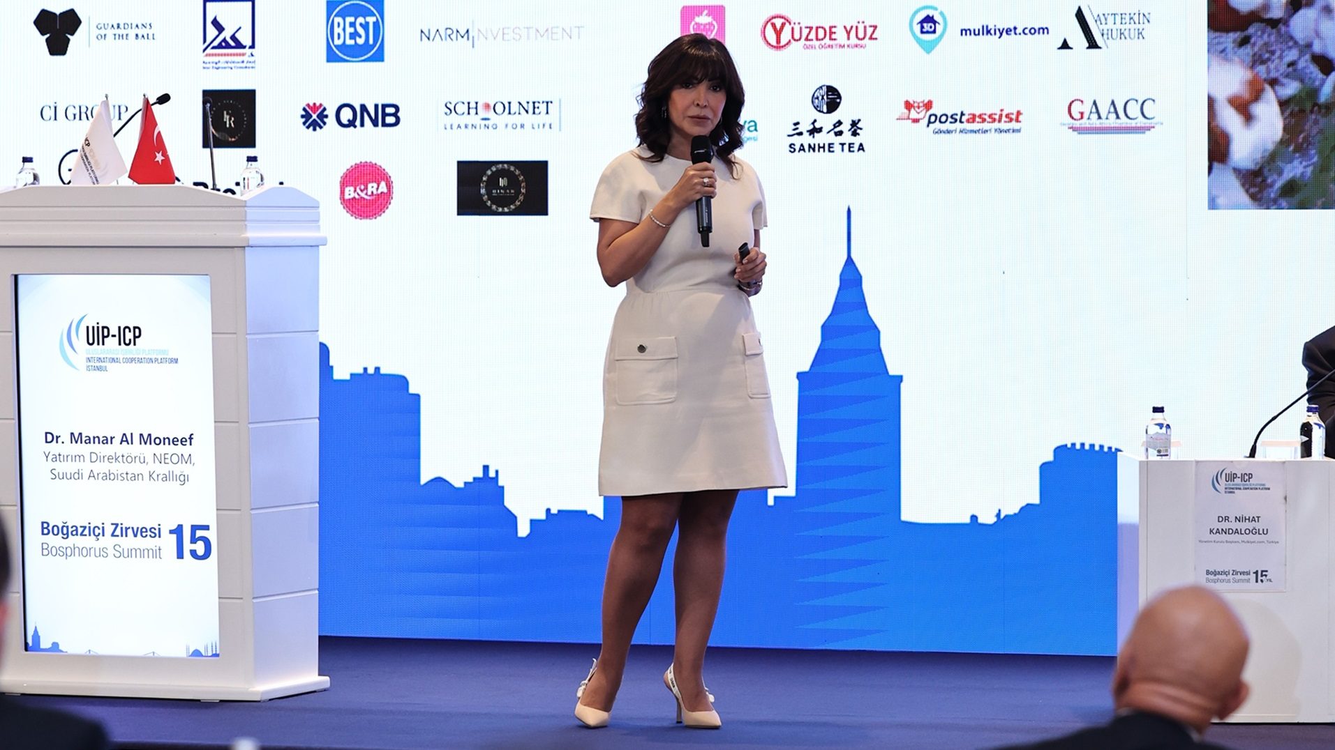 Suudi Arabistan’da 26 bin 500 kilometrekarelik bir alanda kurulan 500 milyar dolara mal olması planlanan geleceğin şehri Neom’un Baş Yatırım Direktörü Dr. Manar Al Moneef, 15’inci Boğaziçi Zirvesi’nde konuştu. Bu proje için her şeyi sıfırdan tasarladıklarını belirten Al Moneef, “Burası sürdürülebilirliği yeniden tanımlayacak bir şehir olacak. Sıfır karbon salınımlı bir şehir oluşturuyoruz. Çok daha insani bir şehirleşme yaratacağız” dedi.
