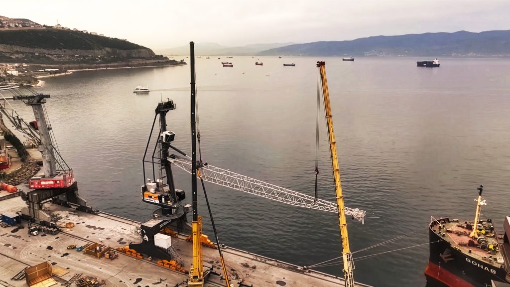 Türkiye’nin en büyük çimento üreticilerinden Nuh Çimento, Hereke’deki özel limanında elektrik tahrikli Liebherr LPS 420 portal döner vinci devreye alarak dökme yük operasyonlarında önemli bir modernizasyon adımı attı. Yıllık 5 milyon ton kuru dökme yük elleçleme kapasitesine sahip liman, şirketin 40’tan fazla ülkeye uzanan ihracat ağının kalbinde yer alıyor.
