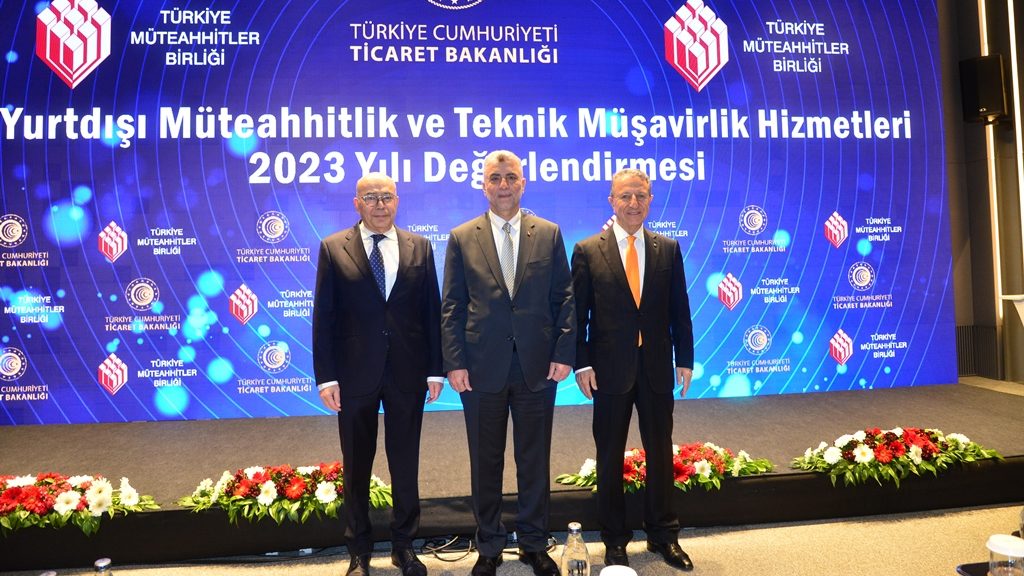 Türkiye’nin önde gelen hizmet alanlarından olan yurt dışı müteahhitlik hizmetleri kapsamında Türk müteahhitler, küresel ekonomik ve jeopolitik zorluklar ile yılın hemen başında ülkemizde yaşanan deprem felaketine rağmen 2023 yılında 27,4 milyar dolarlık proje üstlendi. Sektörün 2023 yılı yurt dışı performansı ve 2024 yılı vizyonu ile hedefleri, Türkiye Müteahhitler Birliği’nin (TMB) ev sahipliğinde ve Ticaret Bakanı Prof. Dr. Ömer Bolat’ın katılımıyla, TMB Başkanı M. Erdal Eren ile Türk Müşavir, Mühendisler ve Mimarlar Birliği (TürkMMMB) Başkanı İrfan Aker’in yer aldığı “Yurt Dışı Müteahhitlik ve Teknik Müşavirlik Hizmetleri Değerlendirme Toplantısı’nda ele alındı.