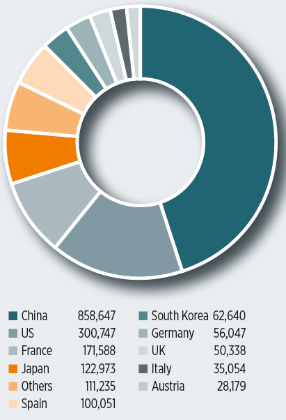 Grafik, Çin merkezli firmaların satışlarda ne kadar baskın olduğunu gösteriyor; bu, listedeki ilk dört şirketin tamamının Çinli olmasından kaynaklanıyor. Sadece bu dört şirket toplamda 718 milyar ABD doları satış yaptı. ABD, Çin merkezli firmaların toplam gelirinin yaklaşık %35’i oranında gelirle ikinci sırada. Fransa üçüncü sırada — bu durum Vinci ve Bouygues’un güçlü performansından kaynaklanıyor, her iki şirket de ilk on içinde. Japonya dördüncü sırada. İlginç şekilde, grafik dışında kalan “diğer ülkeler” kategorisindeki müteahhitler, listeden sağlanan beşinci en büyük geliri sağlıyor.